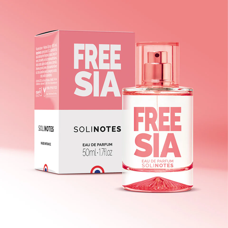 Solinotes sublime le Freesia, cette petite fleur délicate gorgée de soleil, en créant une fragrance qui activera vos sens. Le souffle vitaminé des fruits font d’abord éclater des sensations olfactives vivifiantes. Le Freesia et le Jasmin gorgés de lumière, vous caressent de leurs harmonieuses nuances.